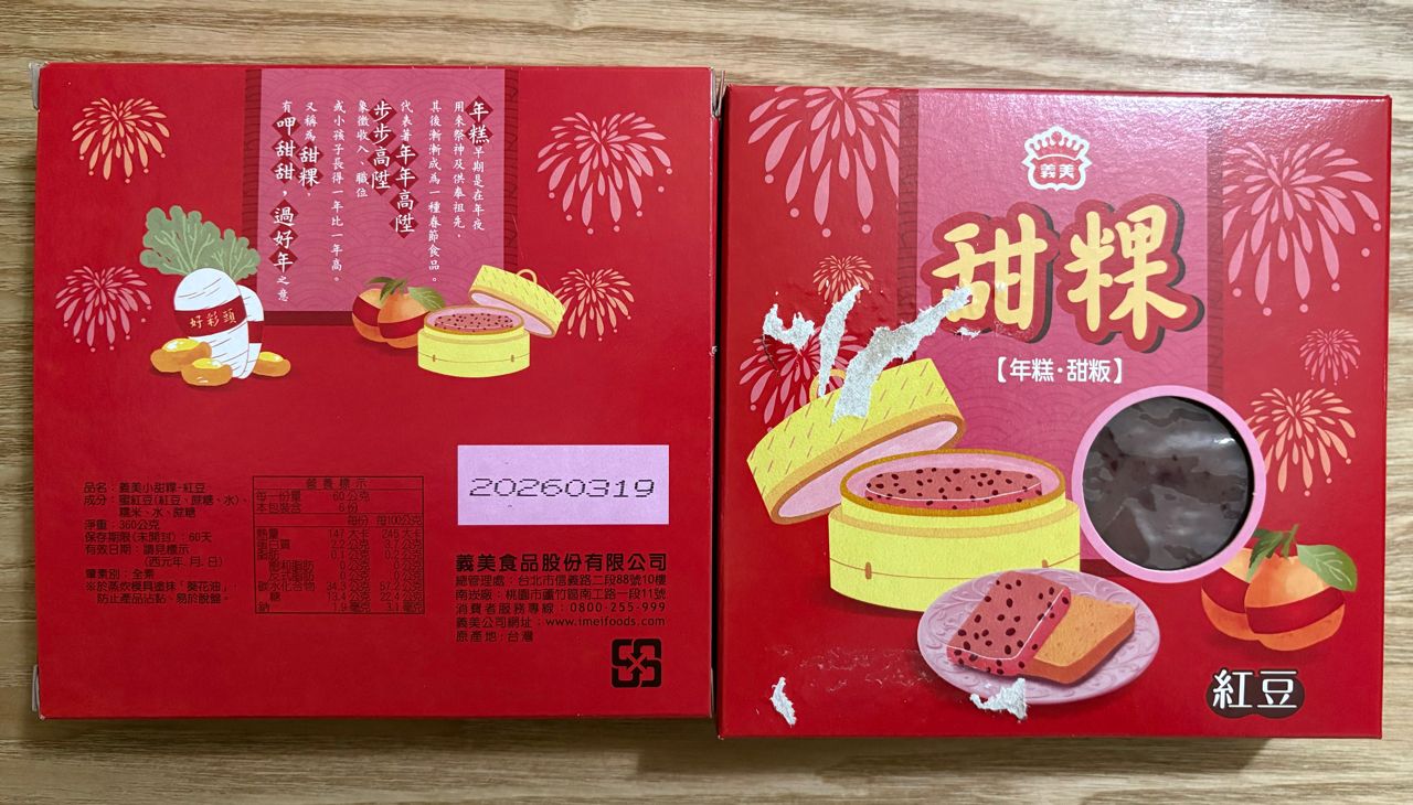 物品:義美紅豆年糕(2026.3.19到期)*2盒