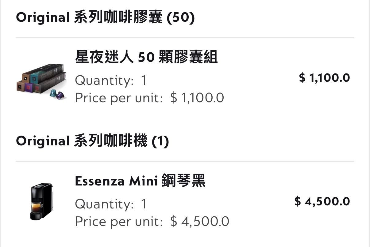 商品名稱:Nespresso 義式咖啡+膠囊