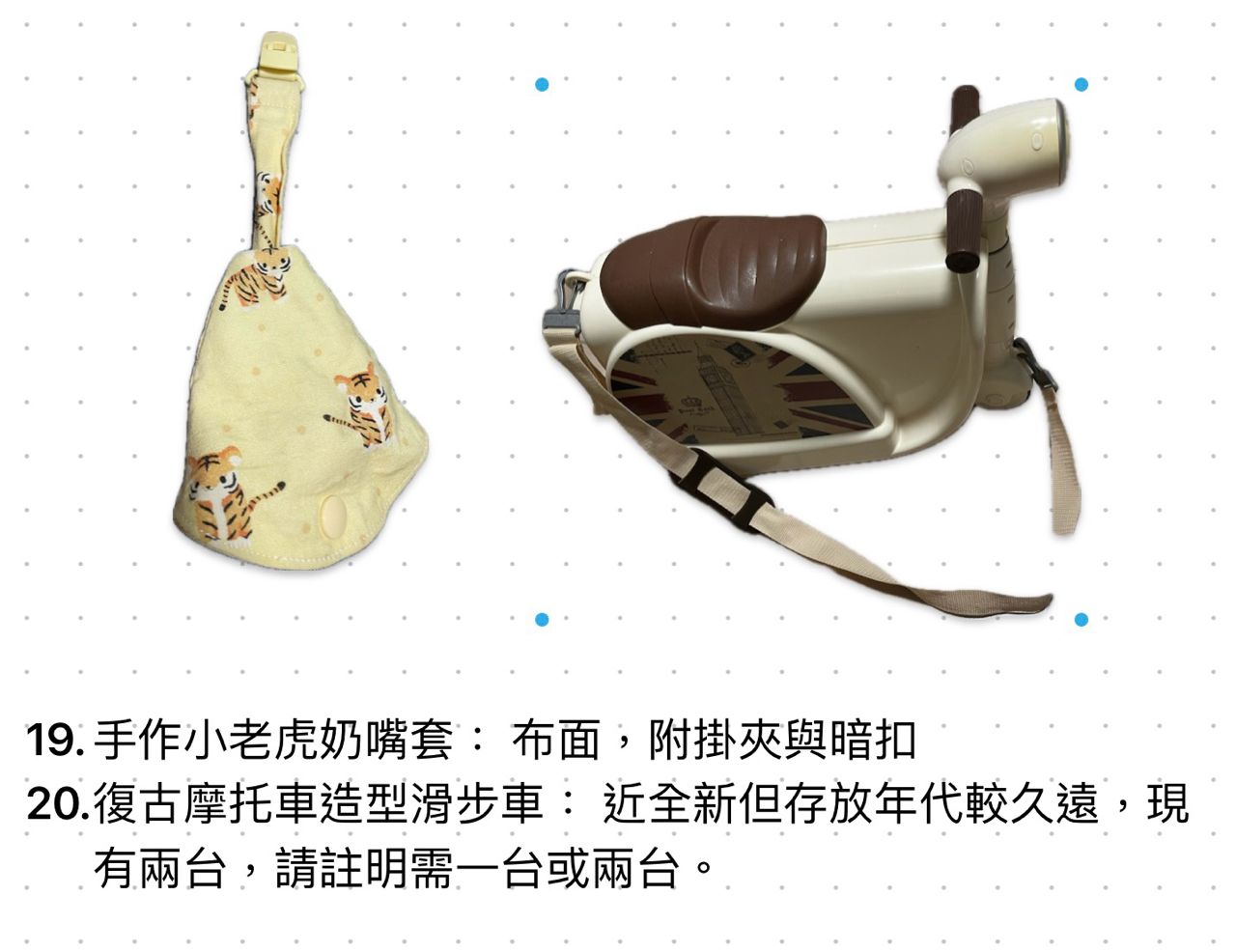 20. 復古摩托車造型滑步車: 近全新但存放年代久遠,現有兩台,請註明需一台或兩台