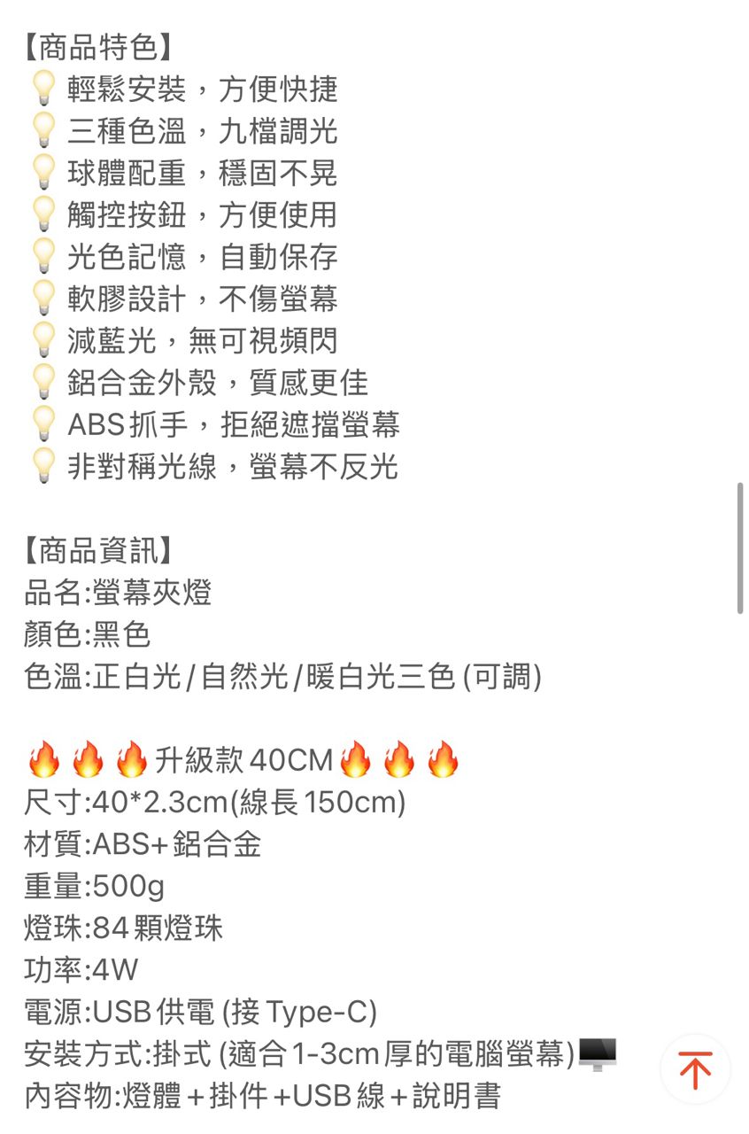 商品名稱:電腦螢幕掛燈 (升級款40cm)