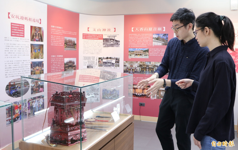民眾參觀神祇古蹟模型。(記者羅國嘉攝)