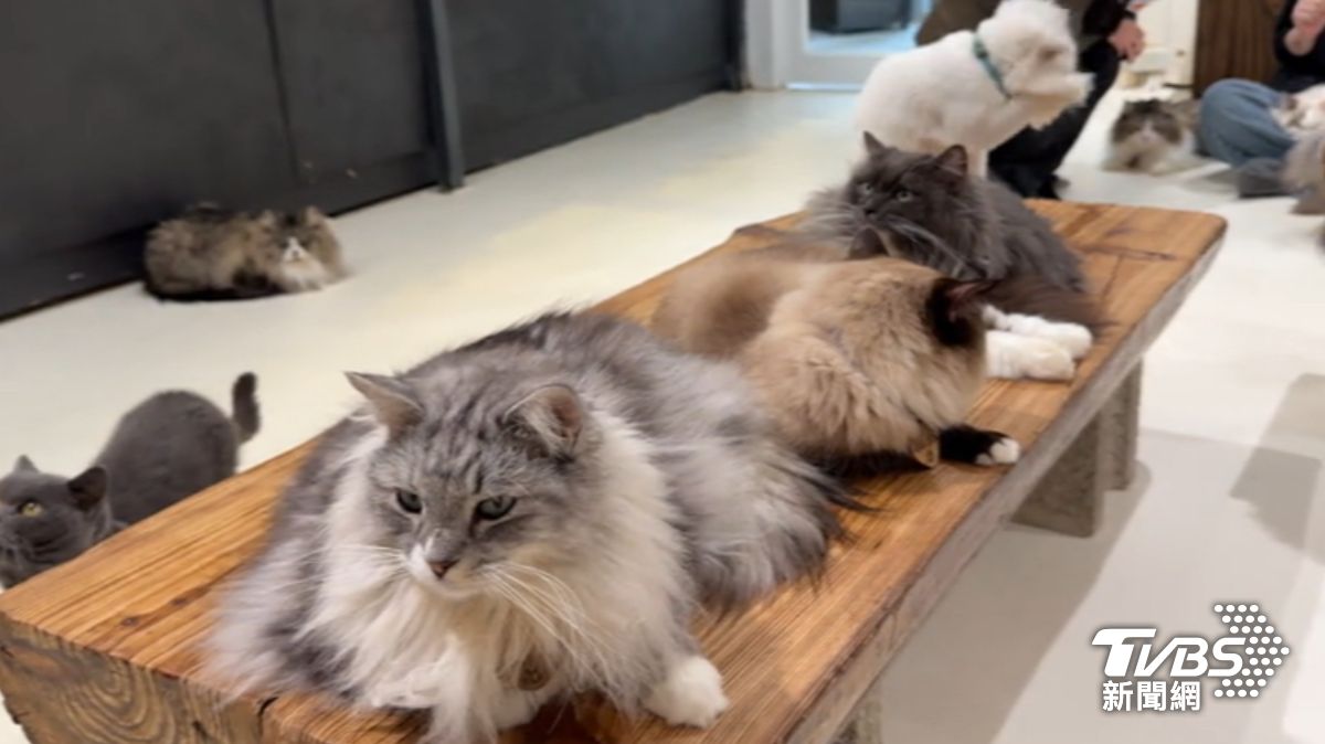 新店一家擁有80隻貓咪的咖啡廳人潮湧現,民眾趁開工前來療癒身心。