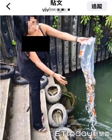 新北市一名徐姓女網友近日發文,聲稱買了數百隻金魚到碧潭放生,幫媽媽祈福,並穿著