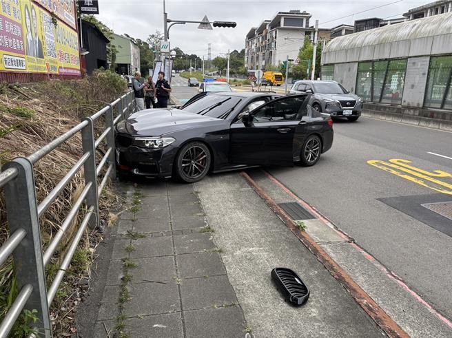 陳姓男子駕車自撞路邊護欄。(民眾提供)