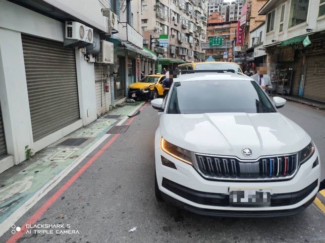 一輛計程車疑似因車輛故障暴衝,如同一頭失控野獸衝向路邊,當場撞擊3部汽車及1部機