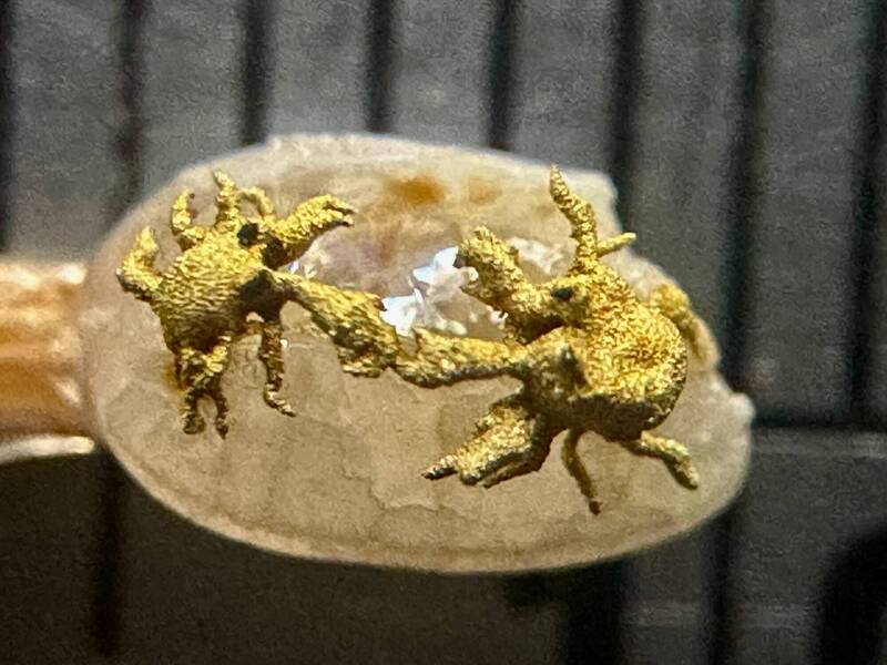 陳逢顯表示,0.2公分的黃金毛蟹幾乎可說是手作金工的極限藝術,黃金質地柔軟卻易變