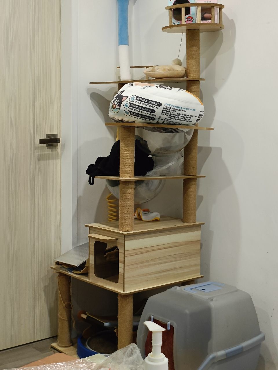 可以拆開再搬運,再重新組,也可以整組搬走,麻繩柱子有抓痕,介意的話就不要囉,意