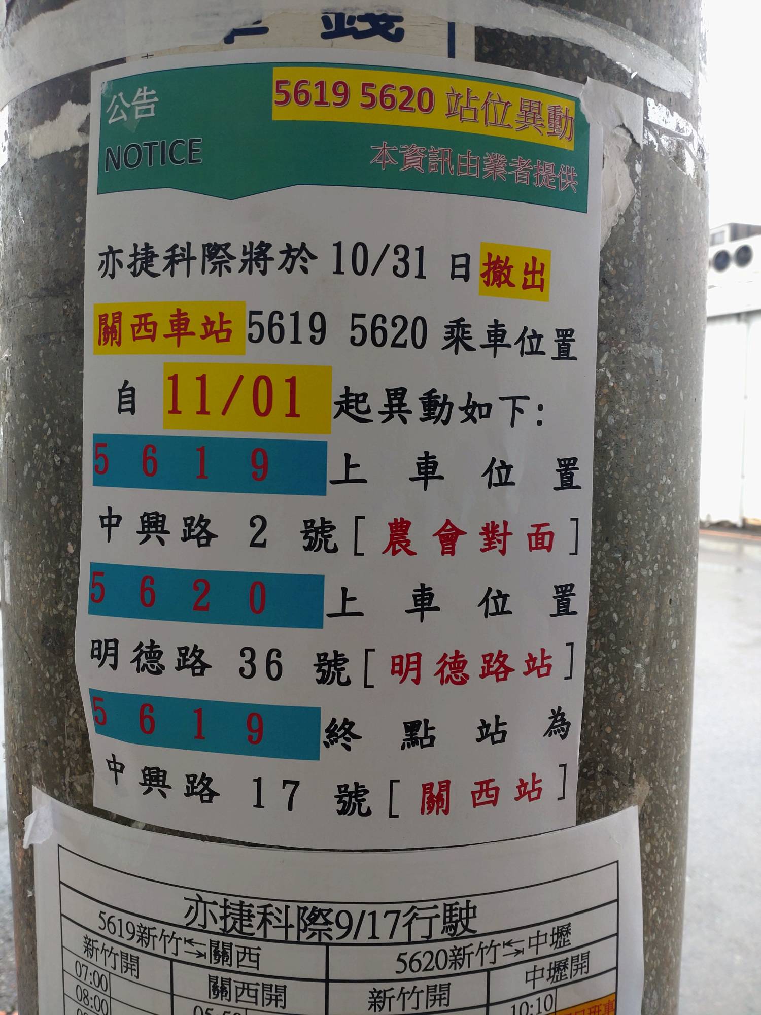 5619也改成站外發車 往新竹於農會前發車 往關西終點就跟現在的位置一樣在門口
