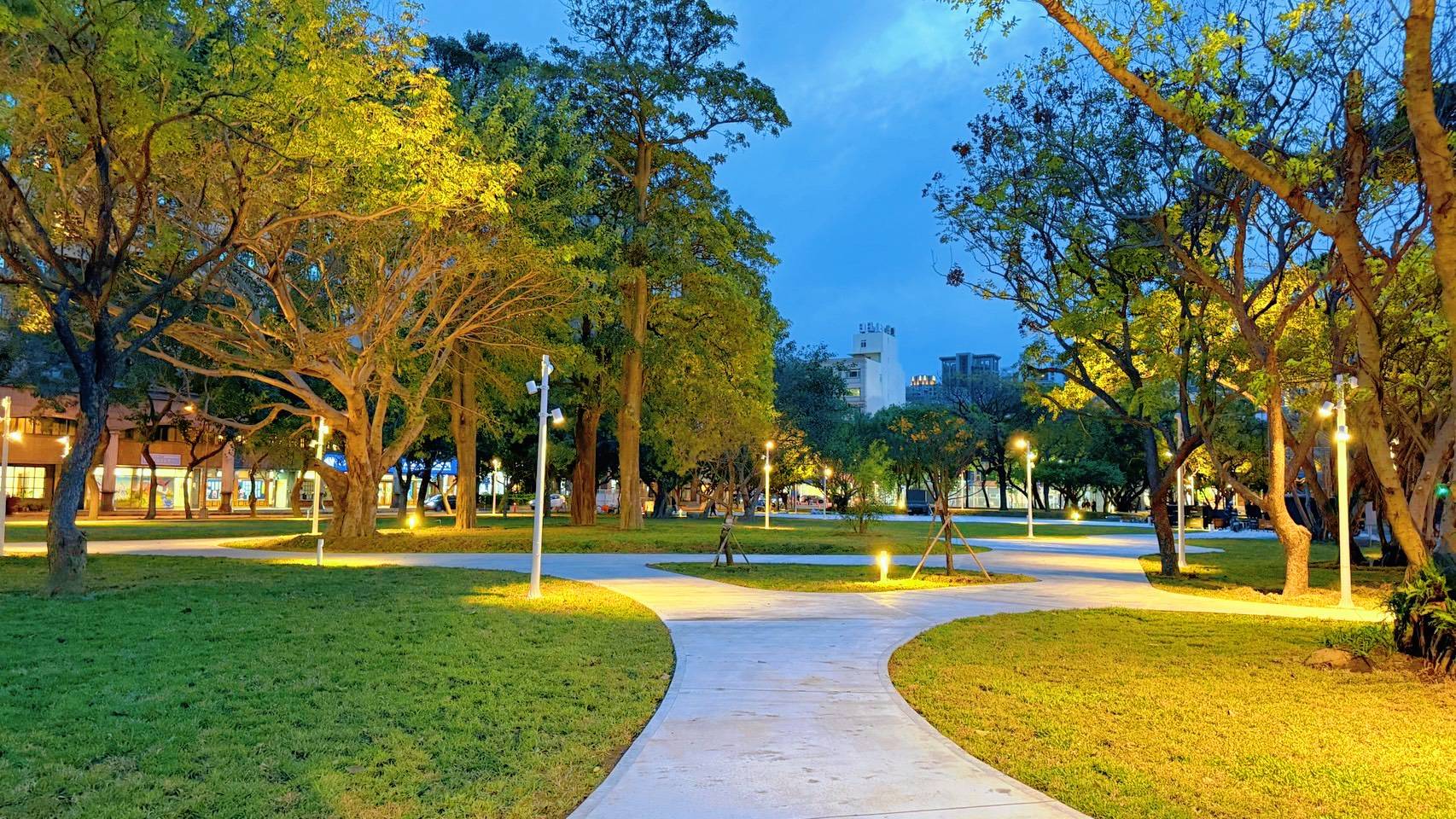 每個時段皆有不同的交織與柔美迷離。豐富層次讓市民漫步其中時,感受竹北綠地空間的