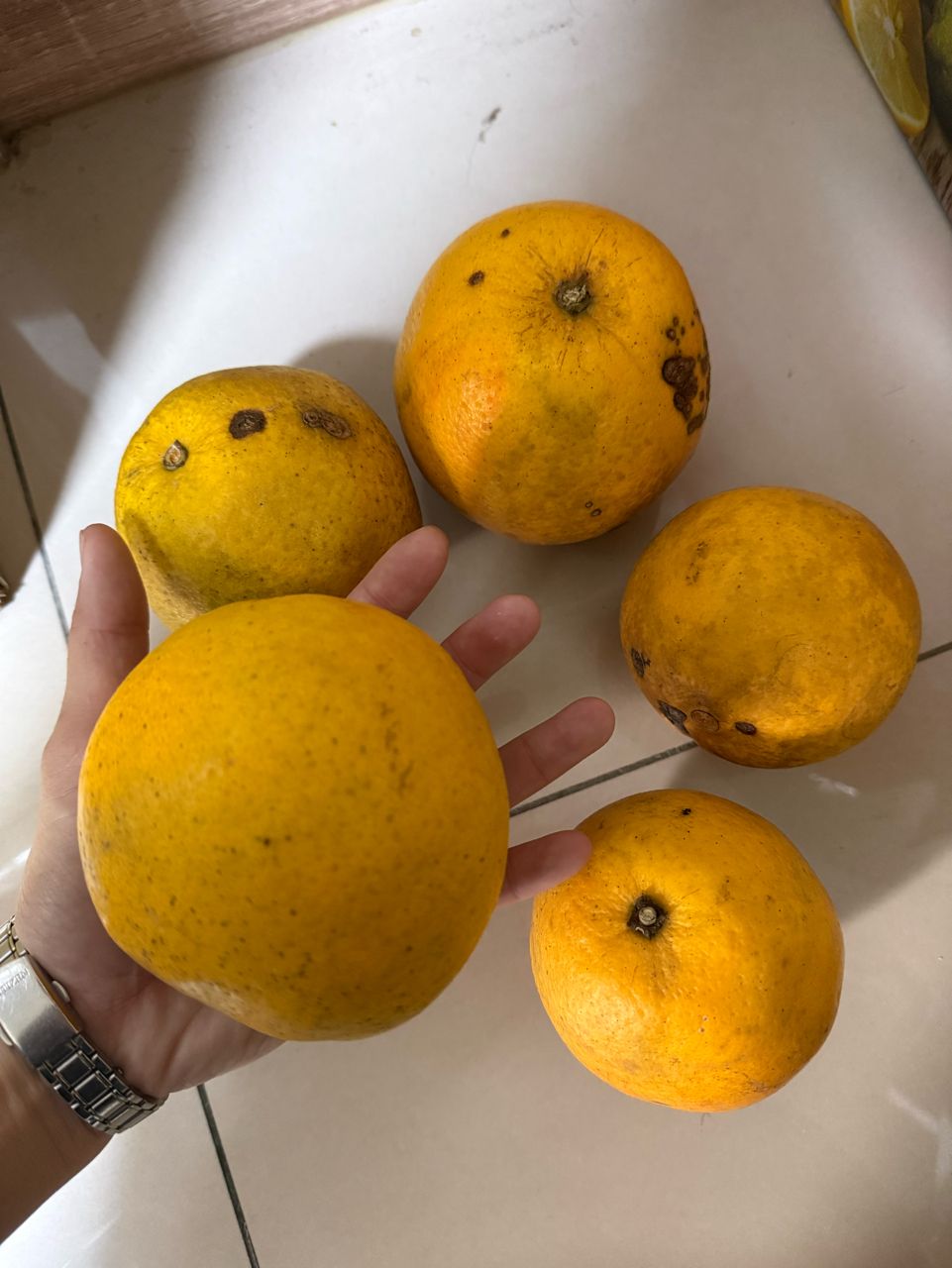 物品項目:(A)自家種肚臍柑五顆、(B)紙袋不織布提袋一大袋、(C)大小紙箱一箱