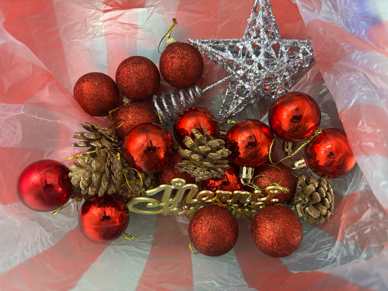 備 註:耶誕樹、裝飾品(掛繩有幾個斷掉)、燈飾已拆開,需自行組裝喔(如下圖)