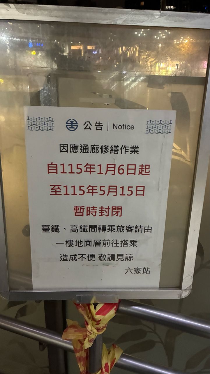 [情報] 高鐵轉乘台鐵的天橋通廊整修封閉