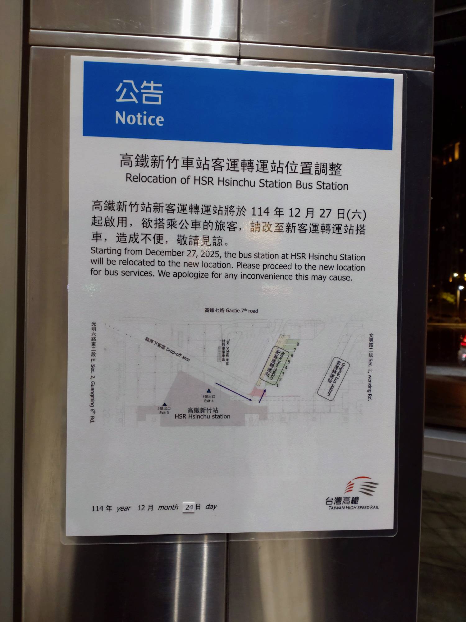 高鐵新竹站除了六家車站連通道施工外 還有另一個公告