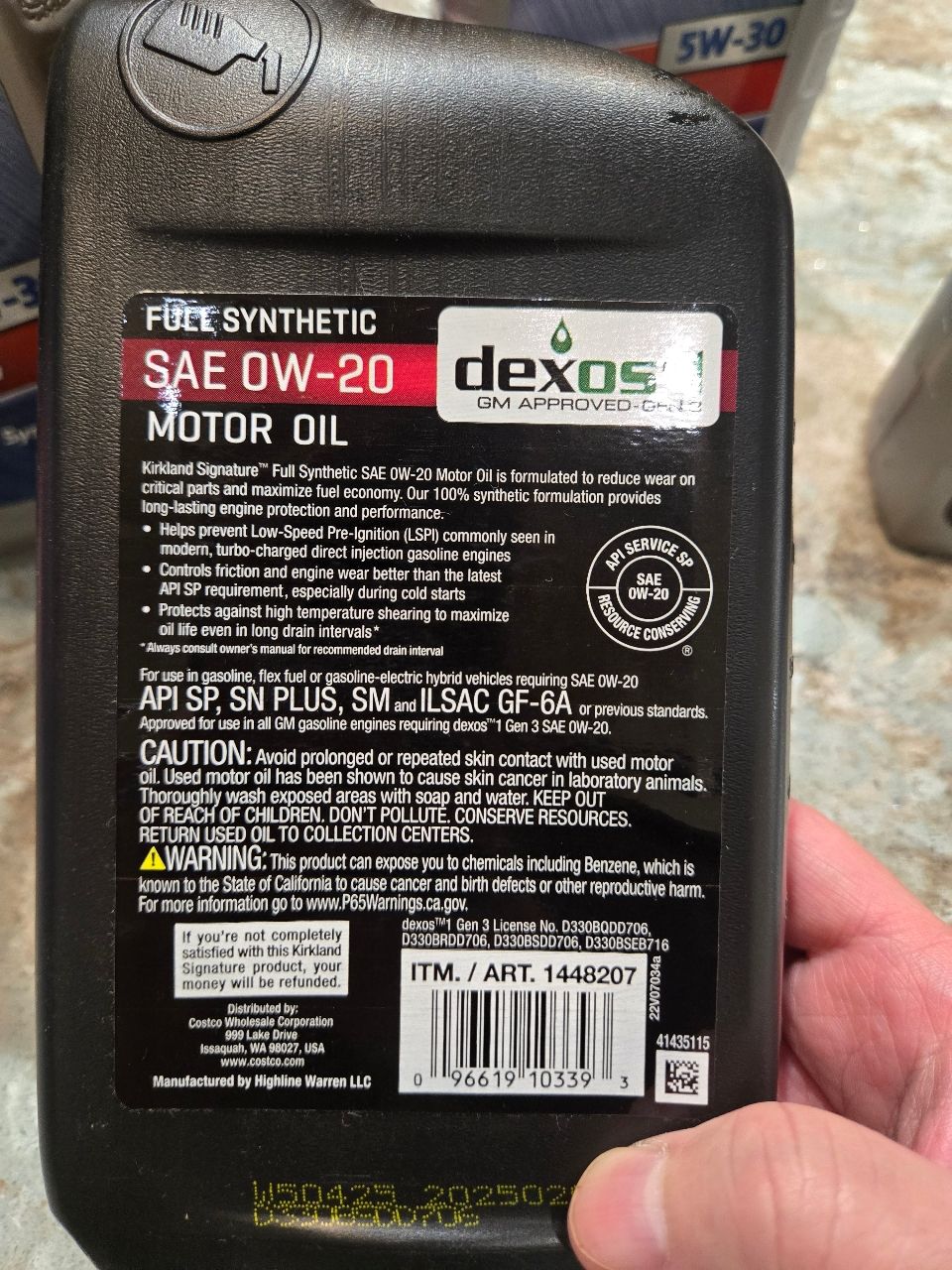 物品項目:mobil1 5w-30*3.5罐,5w-20*0.3罐,KIRKLAND 0w-20*0.3罐