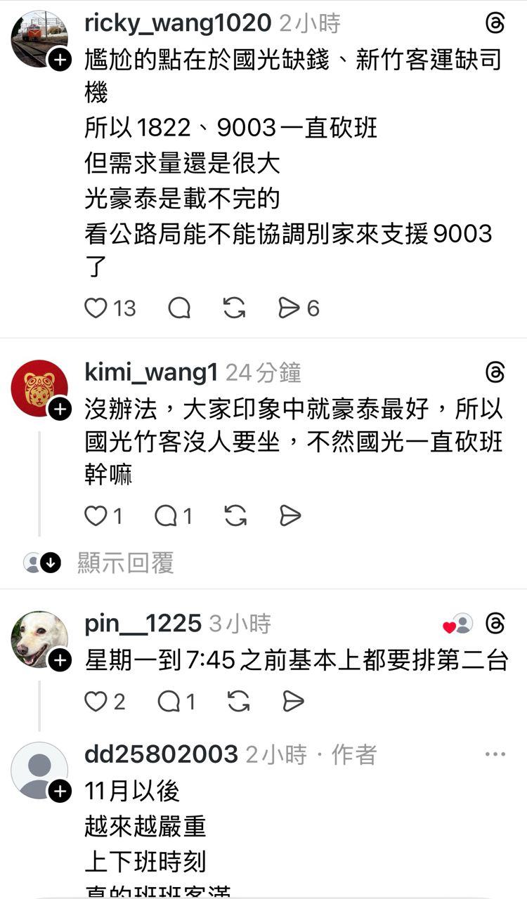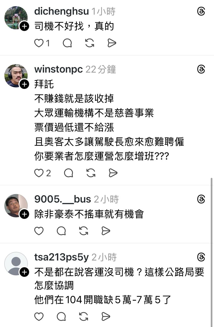 但是就卡在司機缺乏 所以班次開不出來
