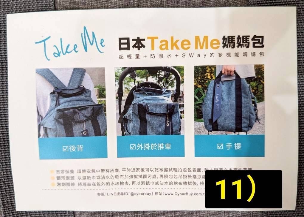 11)贈出)贈/全新/日本 Take Me 媽媽包:展場滿額贈,可後背、手提或掛於推車上,