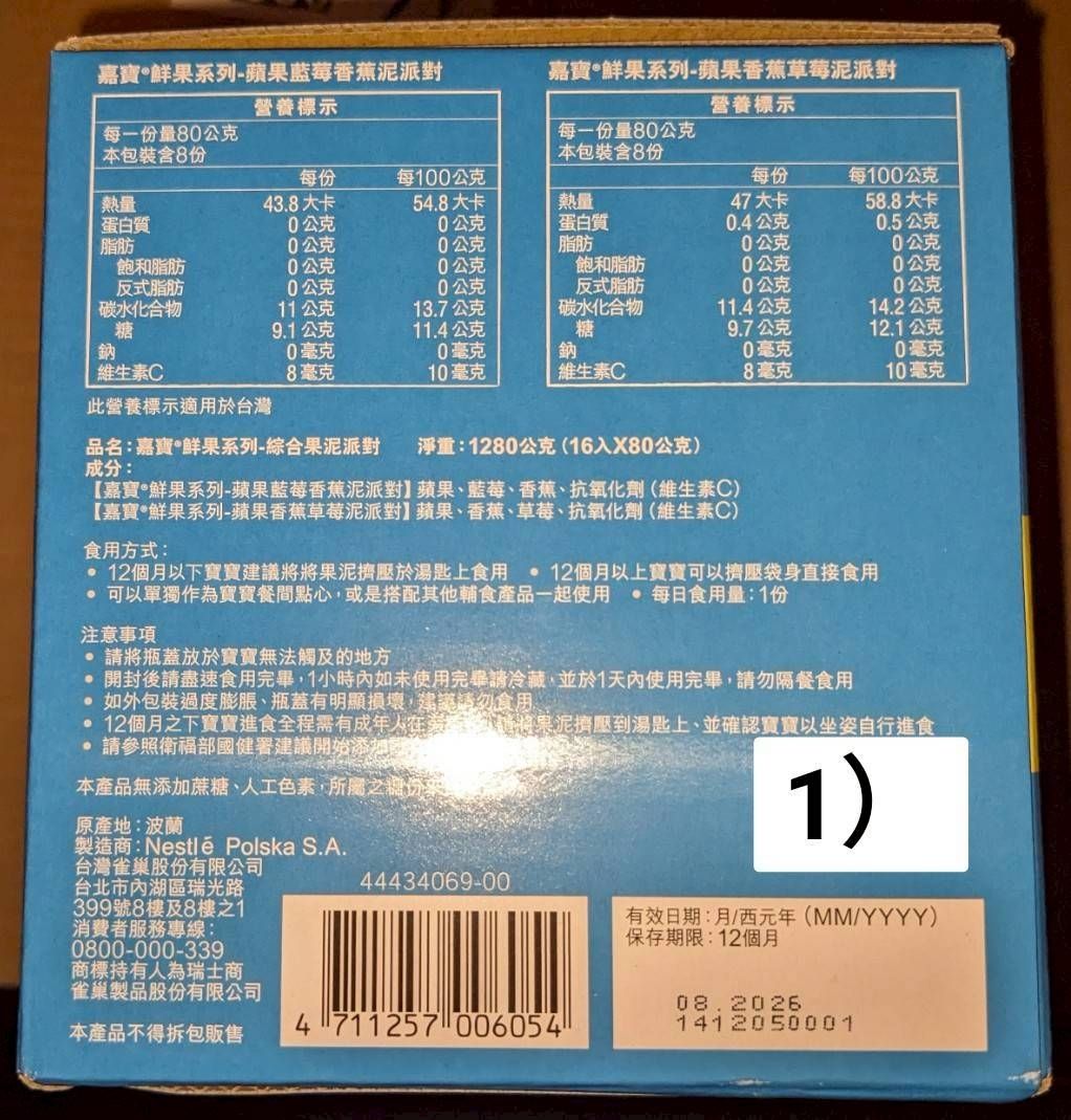 13)贈出)贈/全新/嘉寶果泥16入:盒裝完整,效期至2026.08