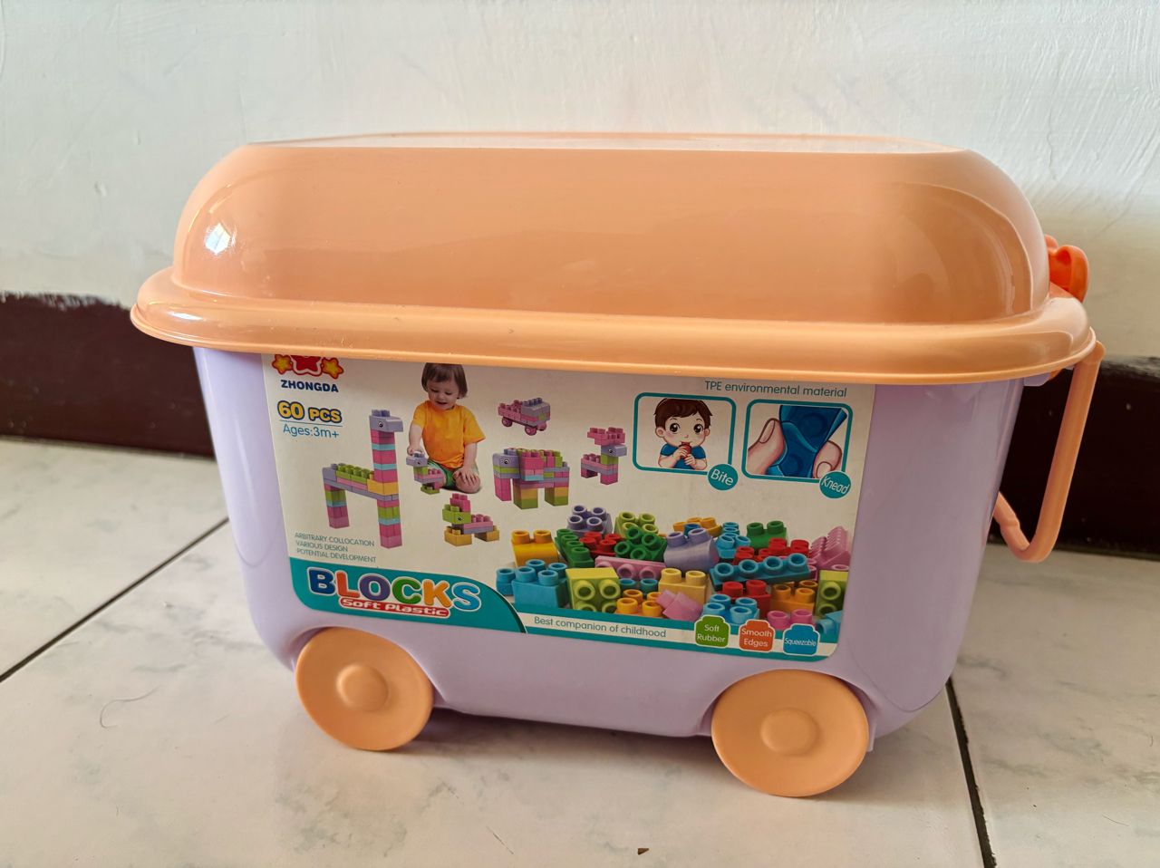 物品項目:軟積木一箱(60塊全在)、Potette兒童攜帶式馬桶(袋子請另外購買或自用