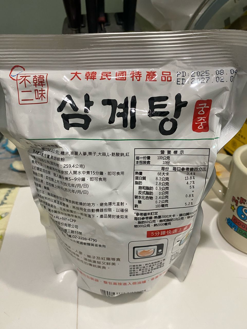 2.人蔘雞湯共有2包(期限2027/2)