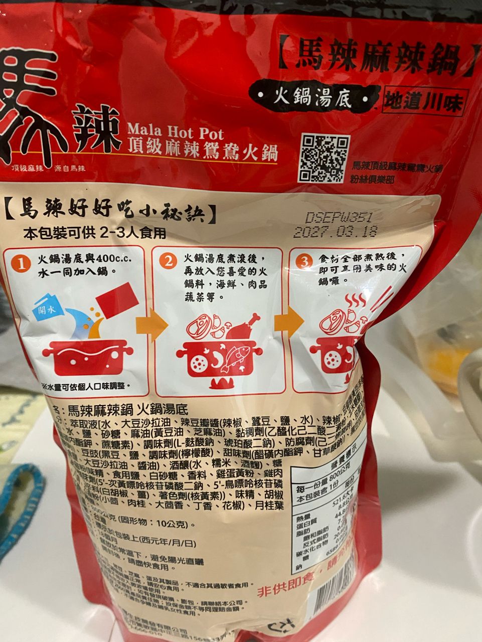 1.麻辣湯底1包(期限2027/3)