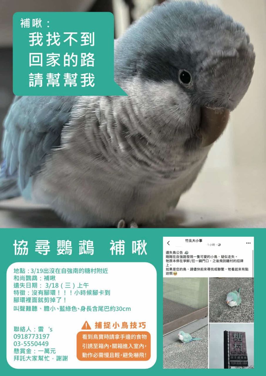 #竹北 #走失鸚鵡 #協尋寵物 #竹北走失