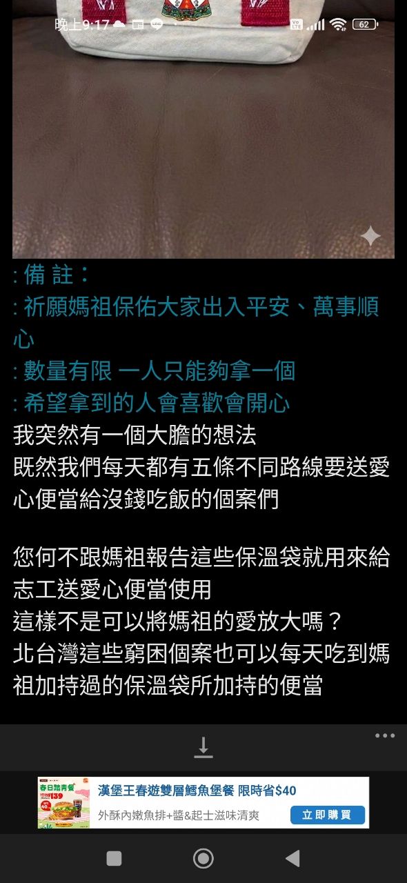小女子實力有限 這次特別訂製的結緣保溫袋數量不多 希望能將這份來自媽祖的祝福