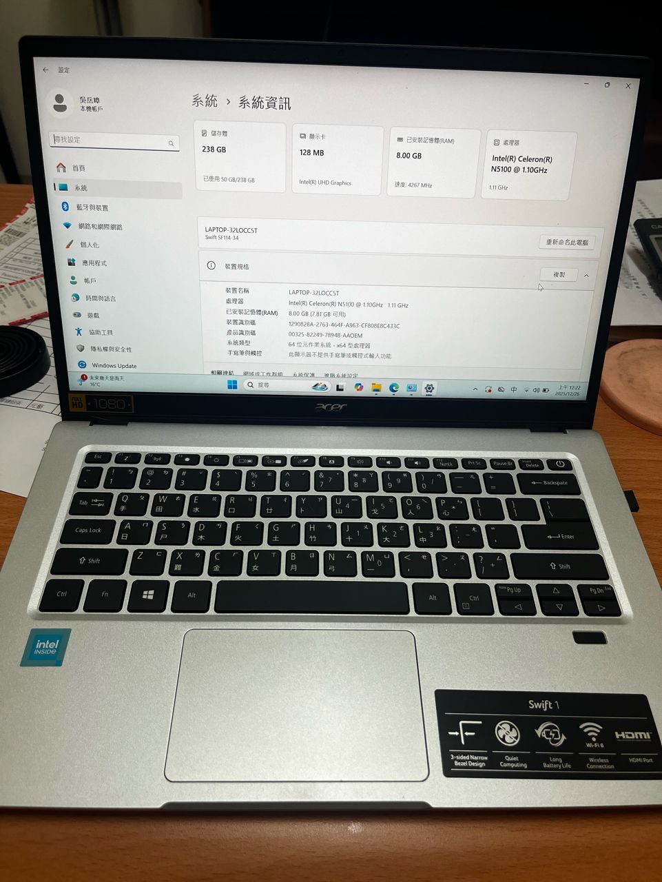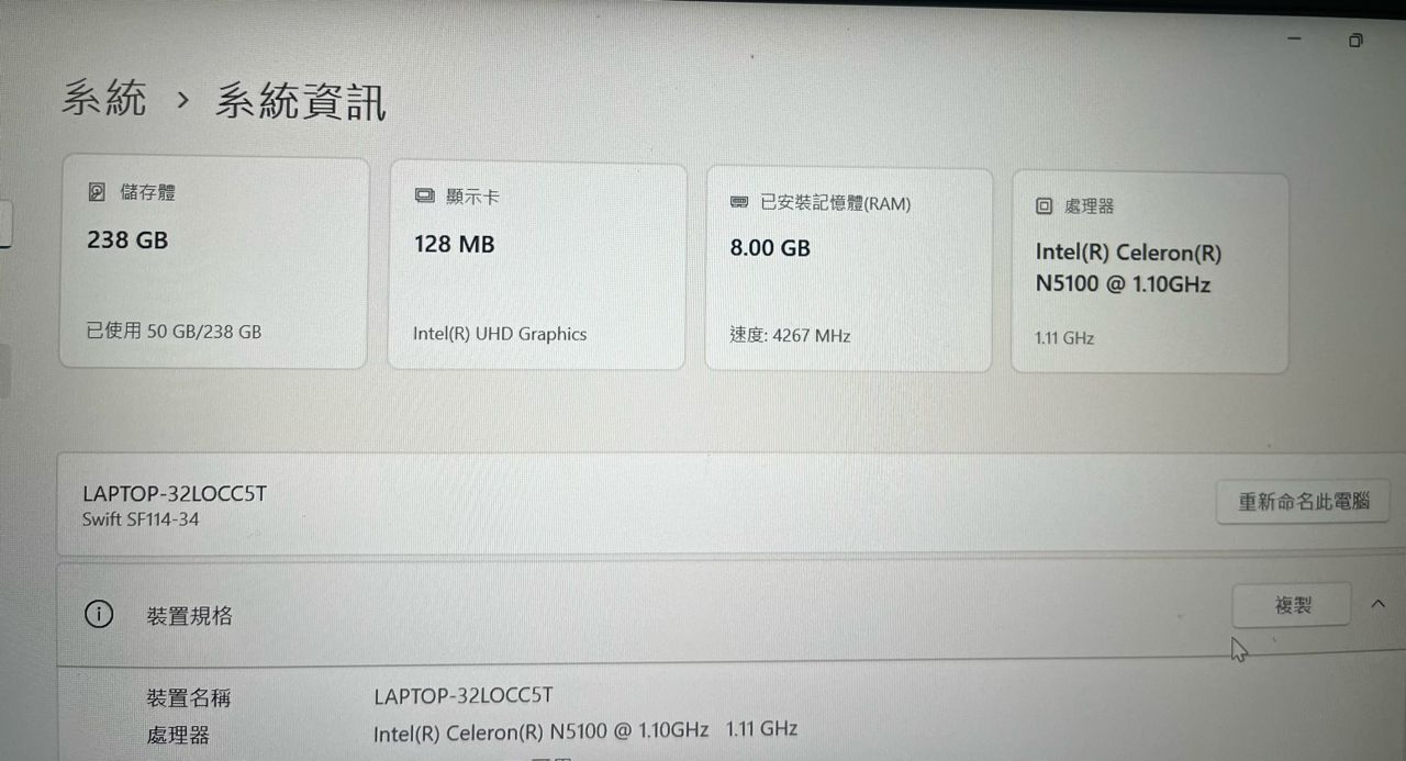‧處理器:Intel Celeron N5100