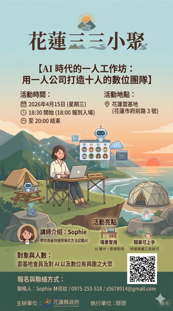 [情報] 花蓮三三小聚-4/15 Ai時代的一人工作坊