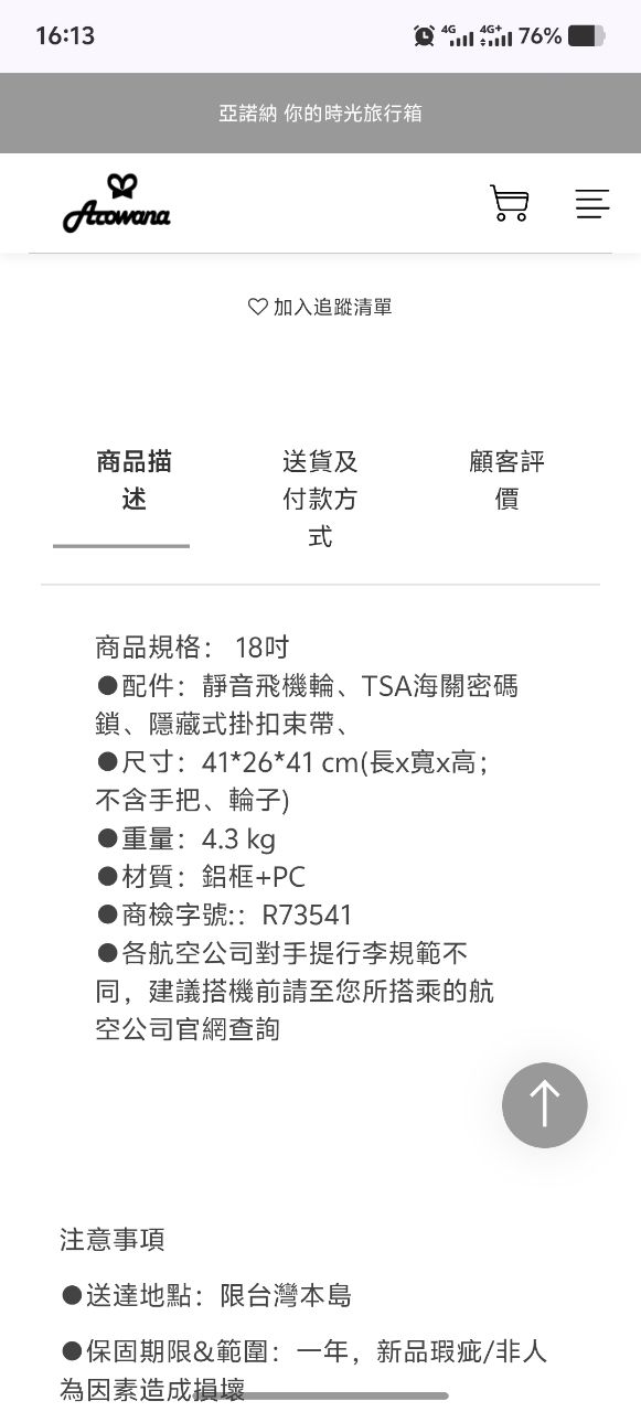 商品:亞諾納-全新18吋前開式鋁框行李箱