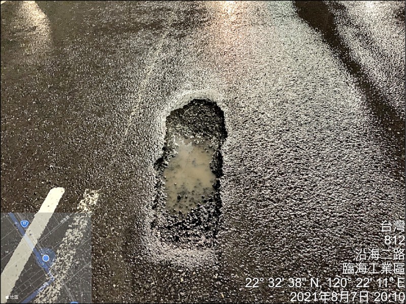 ,發現沿海一路、小港轉運站前、中山四路國道一號尾端下交流道均有破洞,都已通報。
