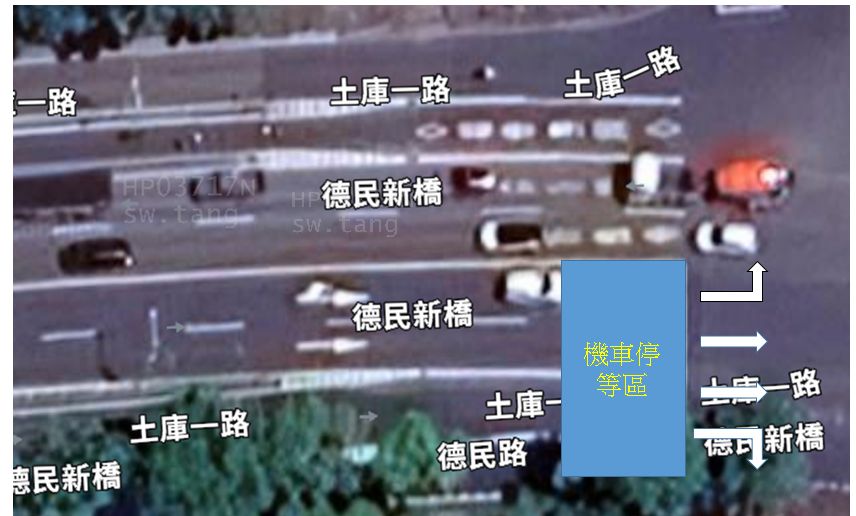 : 在塗銷了待轉區之後,為了解決機慢車左轉的問題,採用了類似台1與水管路路口慢車