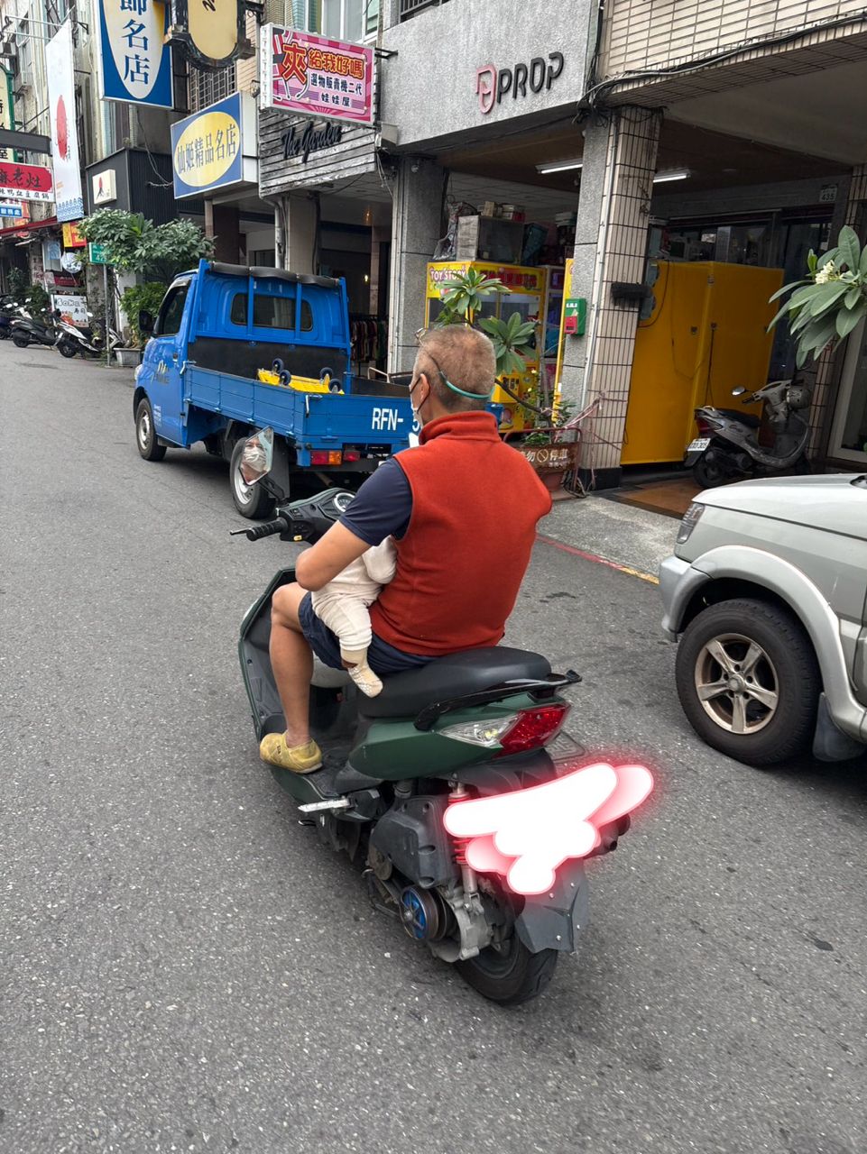 朋友在興中路看到一個大哥用機車載著一個嬰兒