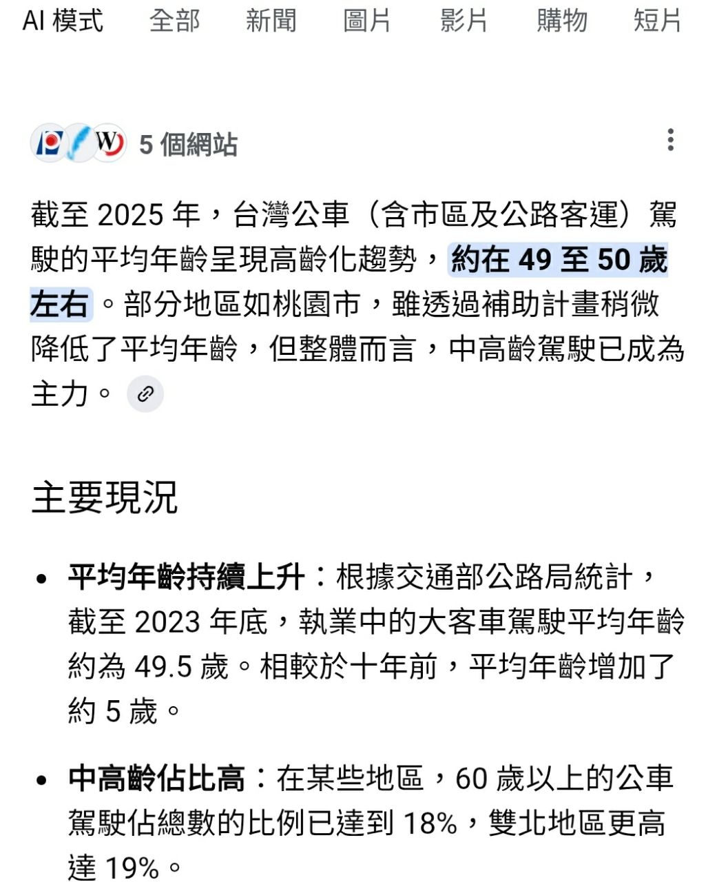 根據統計連公車司機雙北60歲以上有19%