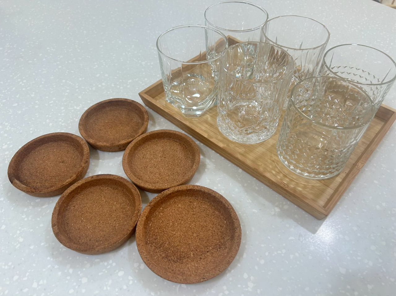 1.玻璃杯六個(杯墊尺寸略小,需要可贈)