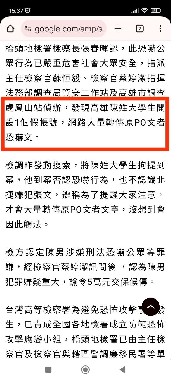 : 引發高度關注,現在po文的人找到了,是一名男大生,被依照恐嚇公眾罪裁定5萬交保