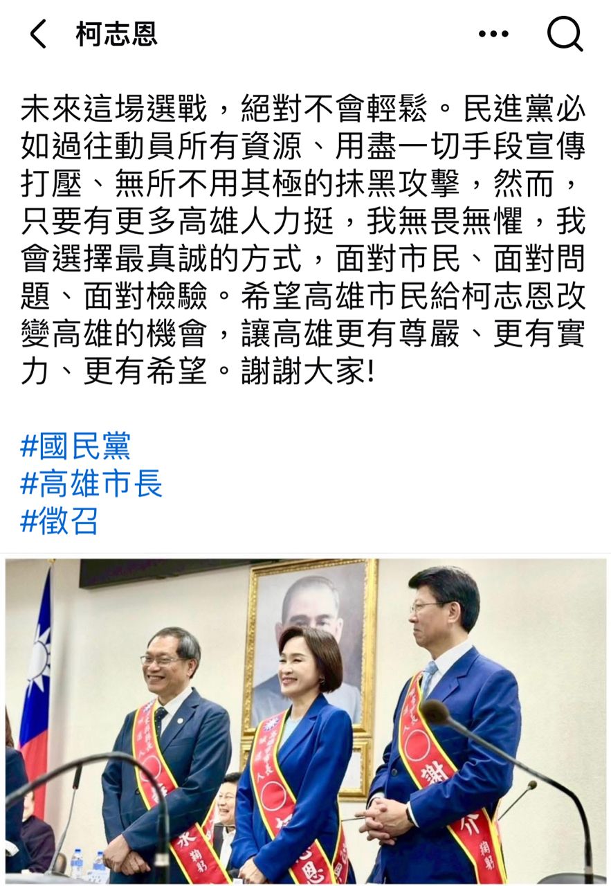 !格!」、「高雄最不需要的就是國民黨跟柯志恩」、「給妳機會就是給機會害高雄人,