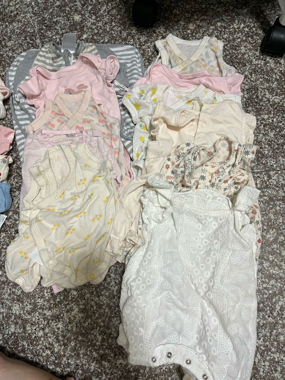 物品名稱:60-70公分女嬰衣服、m的包巾