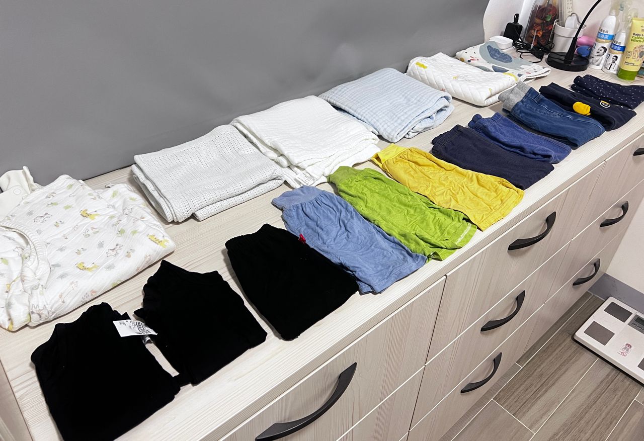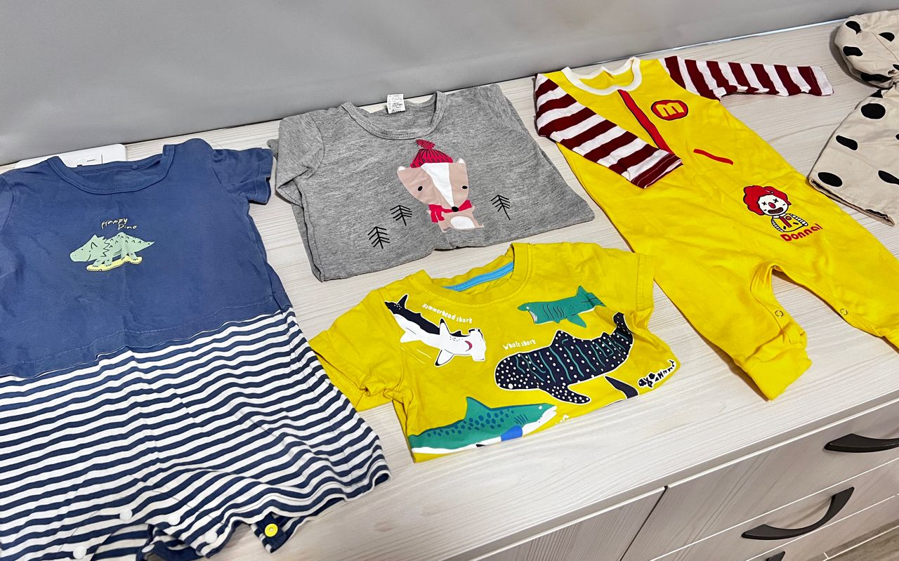 身衣6件、長袖上衣4件、長袖連身衣6件、吊帶長褲2件、背心2件、外套2件(點點那件為