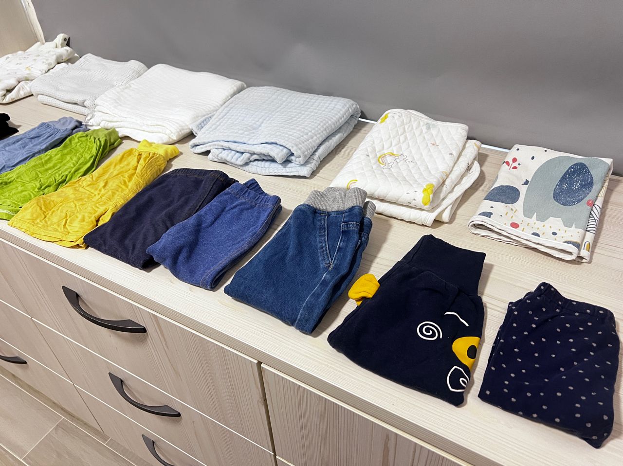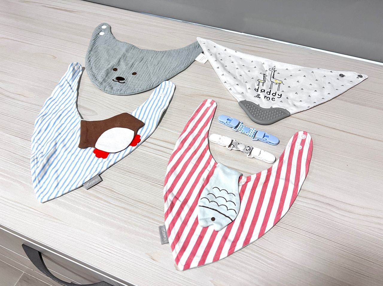 尿布墊2條(無炸屎紀錄,其中一件有蓋名字會貼起來)、浴巾2件、洞洞毯1件、手帕夾2