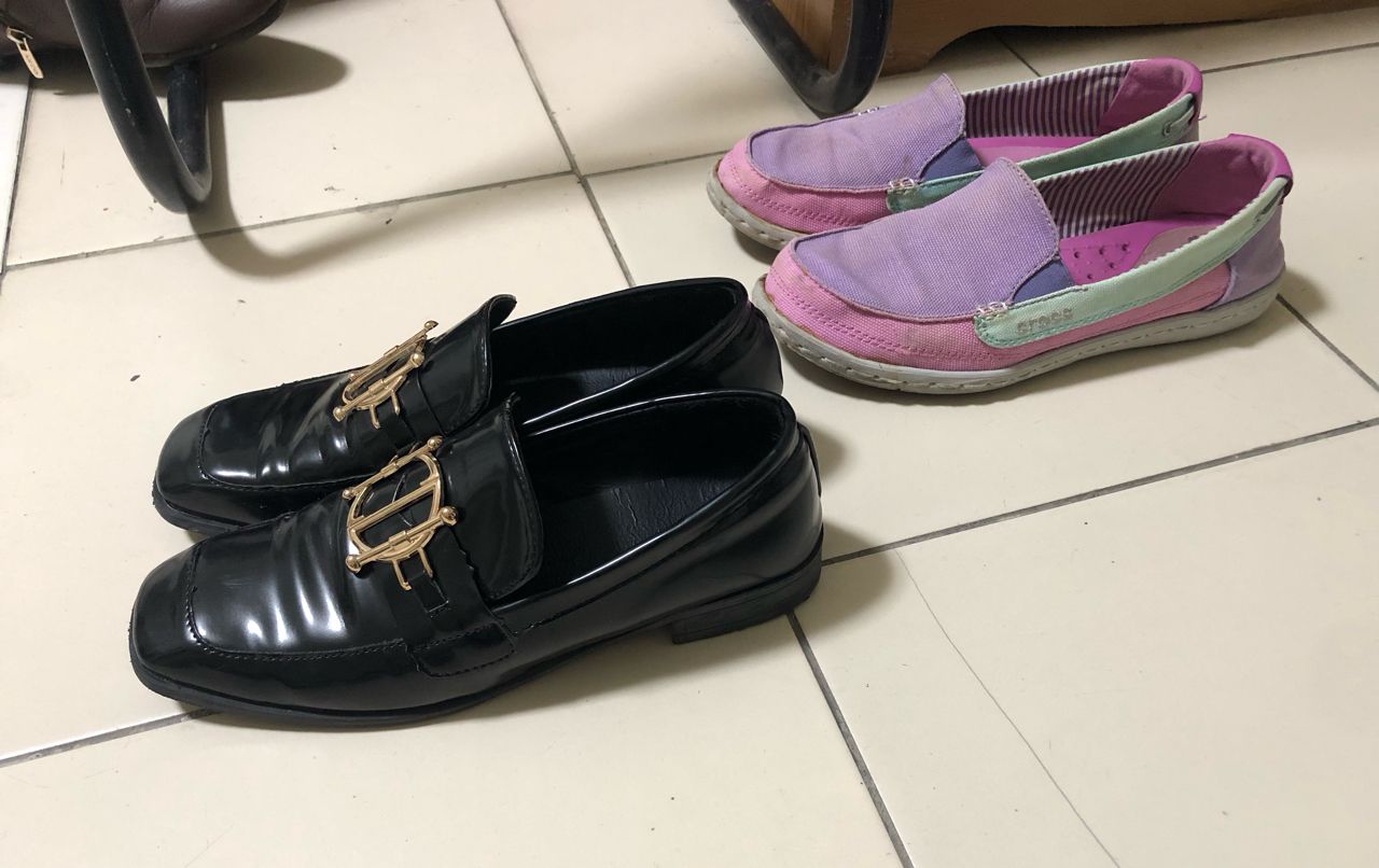[贈送] 女休閒布鞋24、女黑色皮鞋23.5