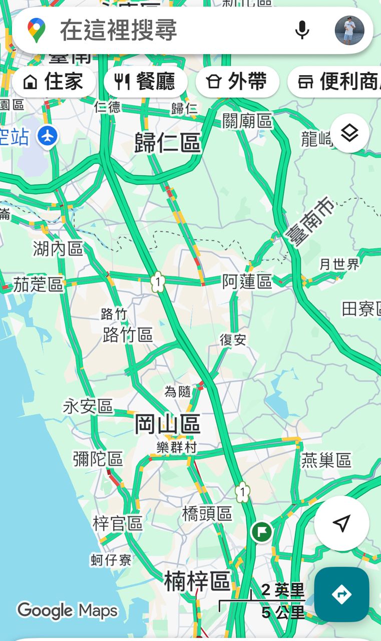 這一個禮拜以來下班時間,體感上國一南下橋頭到岡山路段有變順了,之前下班時間這段