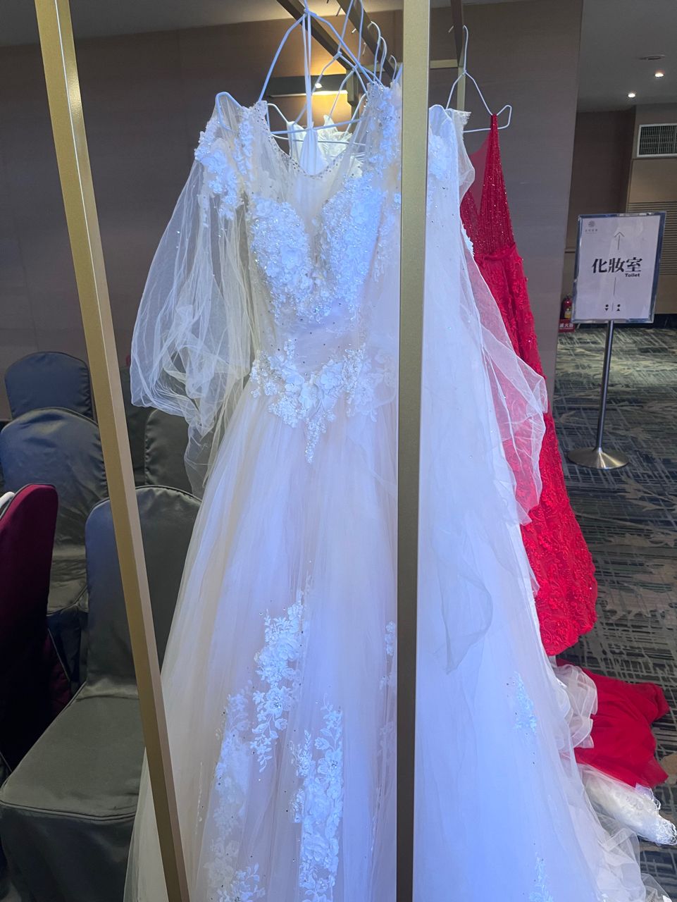 物品名稱:贈送婚紗一件,當初在婚紗展上買的,狀態不錯,裙子美且重工,宴客等級。