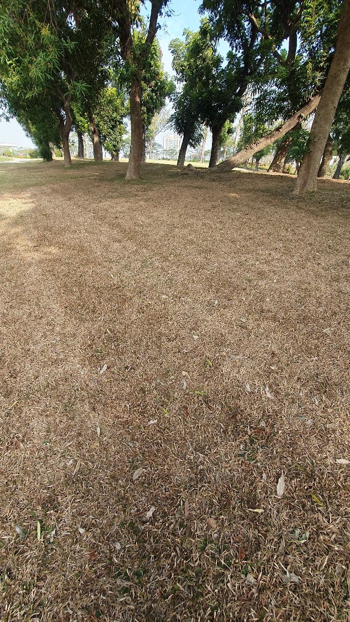 面積轉為枯黃,地表偏乾,和先前的狀態相比差異蠻明顯的。