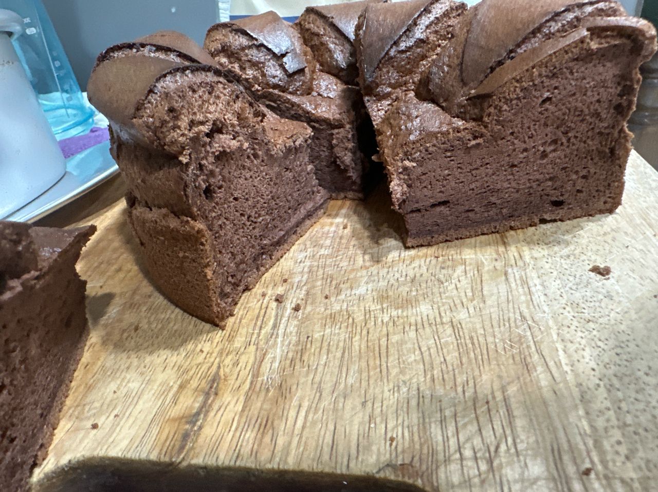 今天早上做的六吋戚風蛋糕 僅切開看切面未吃過