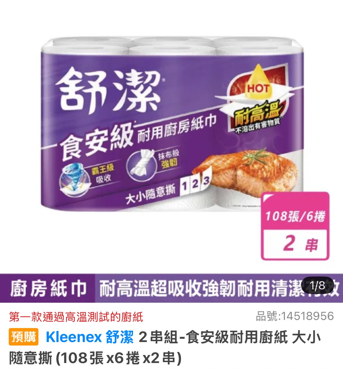 Kleenex 舒潔2串組-食安級耐用廚紙 大小