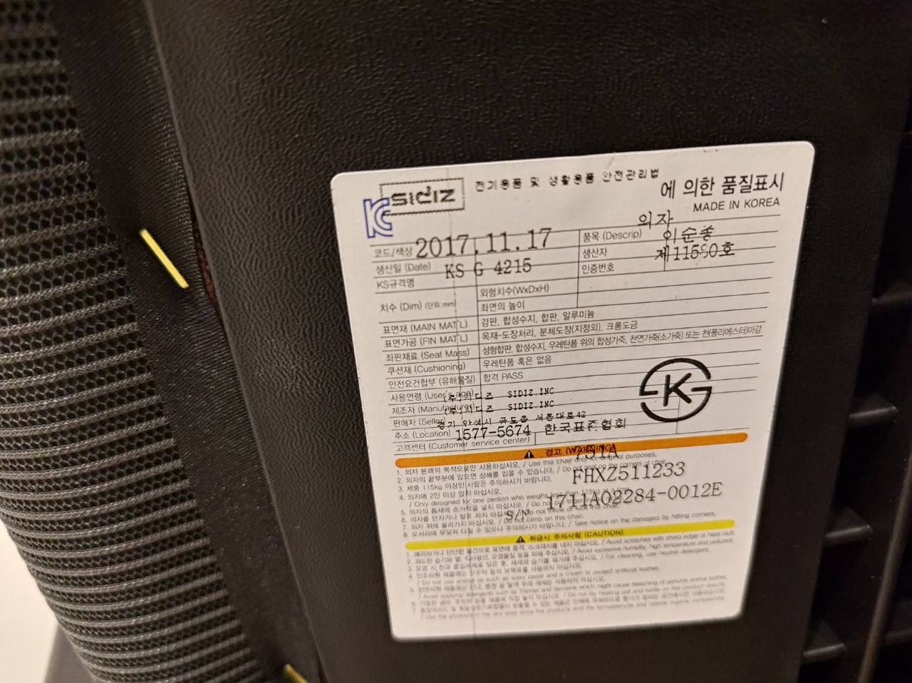 物品名稱:韓國sidiz人體工學椅購於好市多
