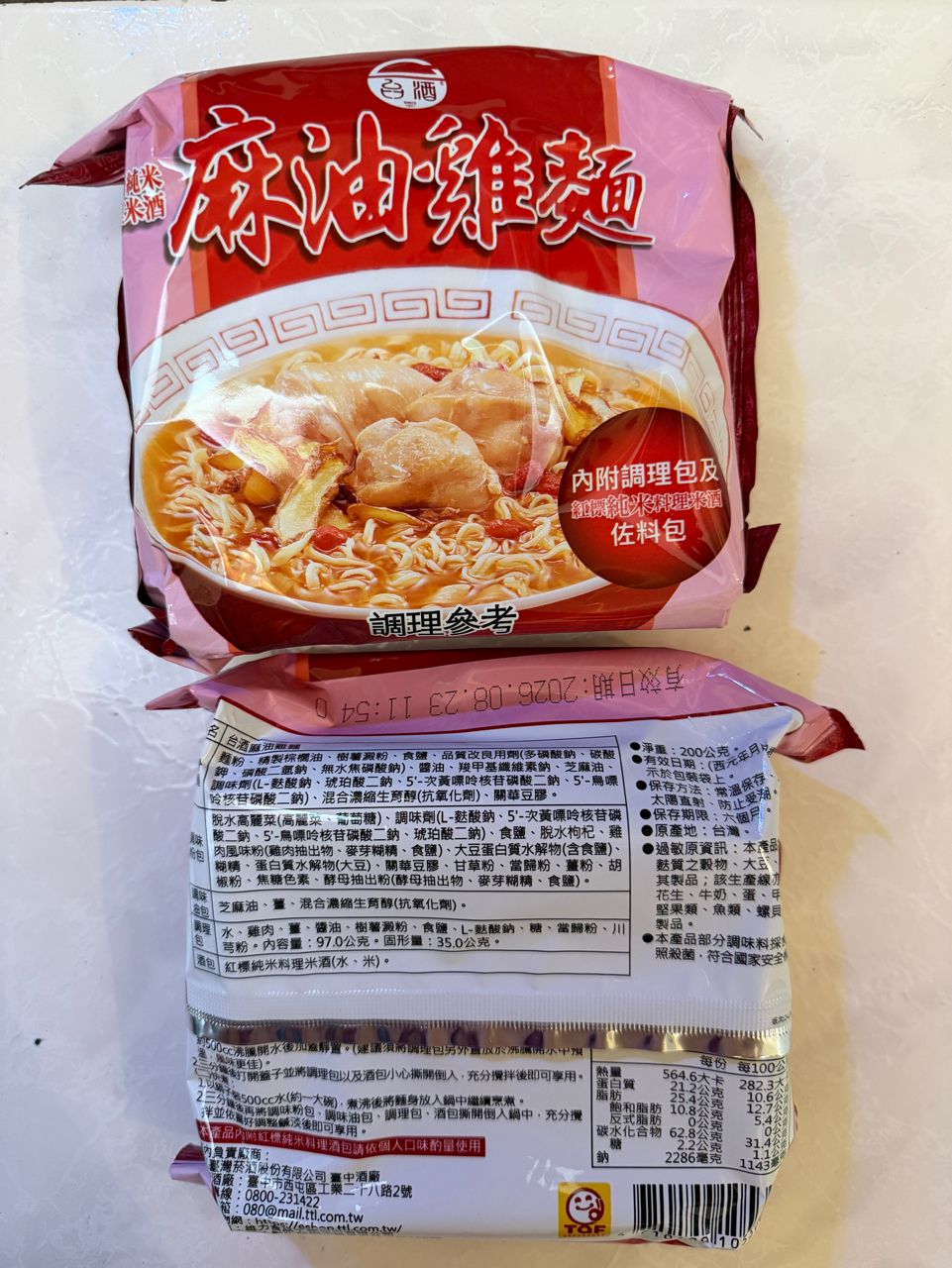 1.台酒麻油雞泡麵2包 (1包換1瓶300cc麥香紅茶)