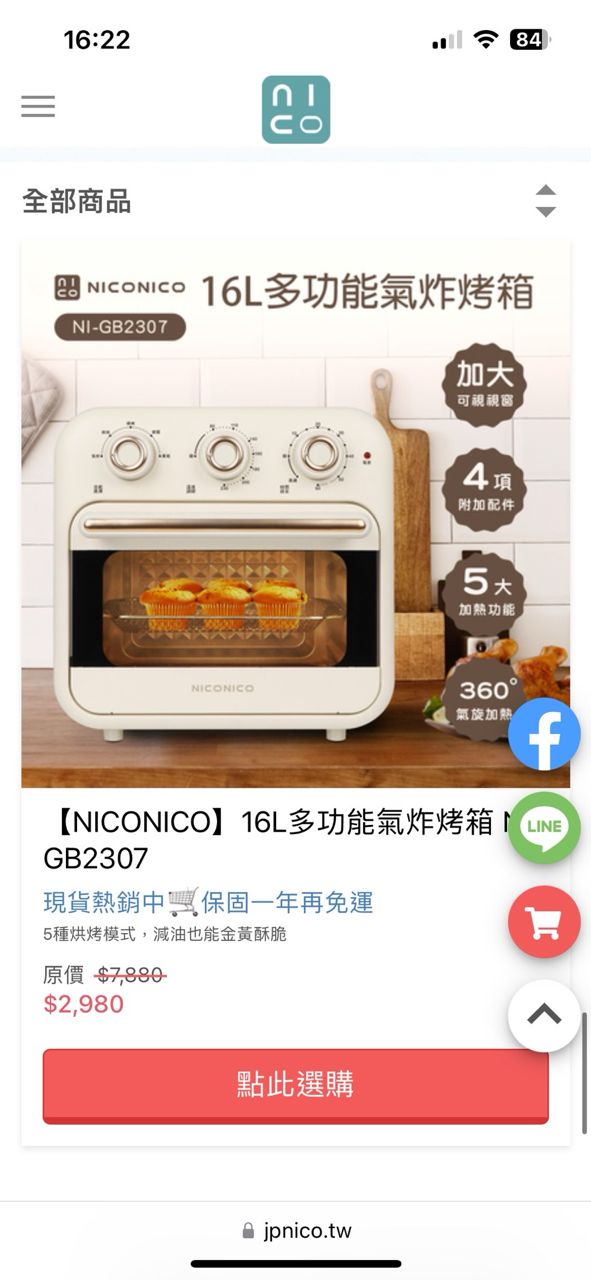物品名稱: 【NICONICO】16L多功能氣炸烤箱 NI-GB2307
