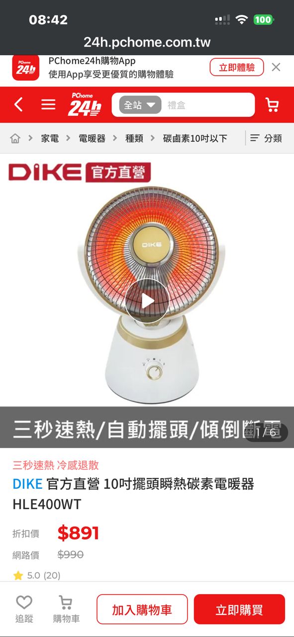 交易物品:DIKE 10吋擺頭瞬熱碳素電暖器