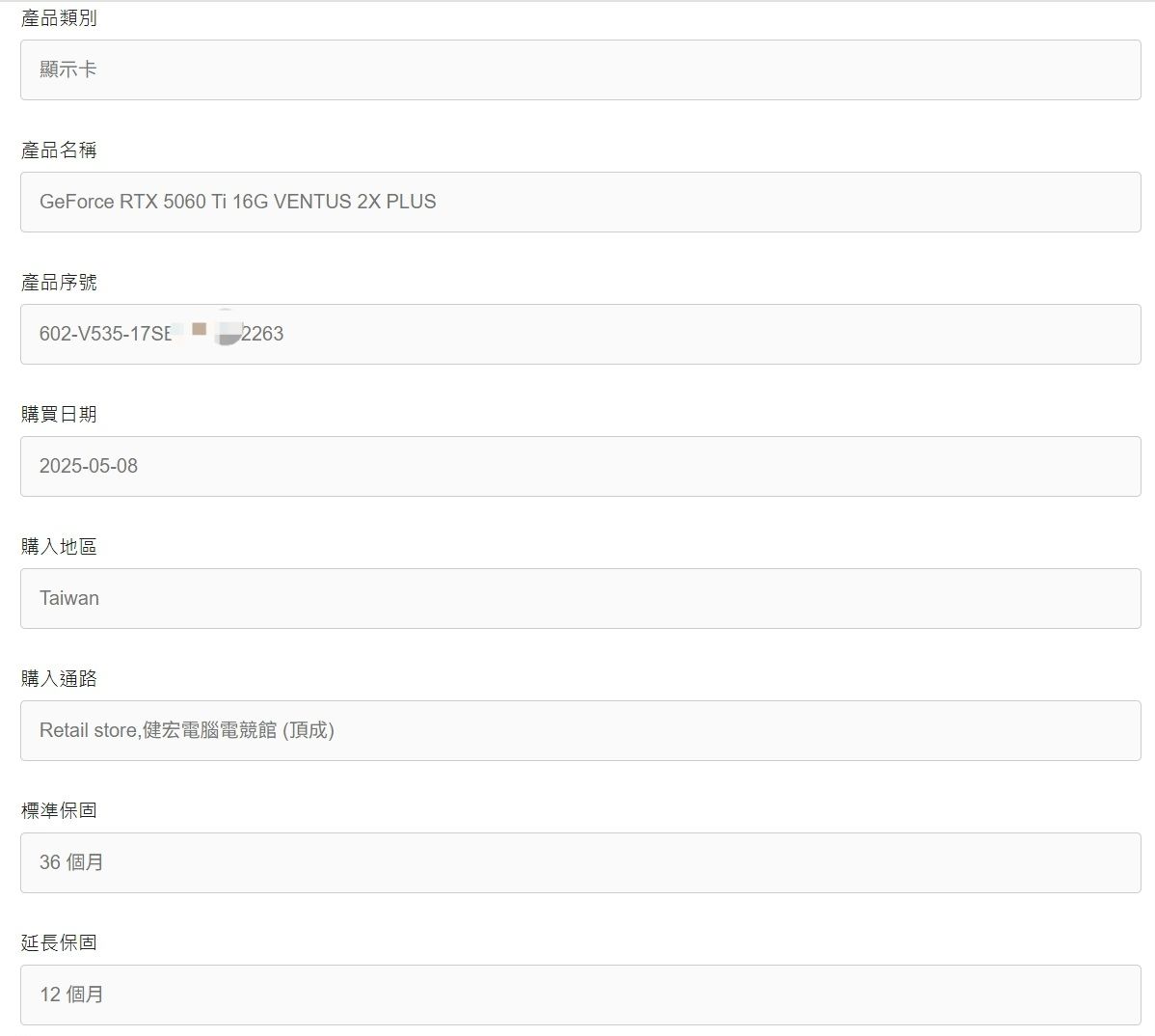 ◎硬體型號: MSI 5060ti 16g VENTUS 2X